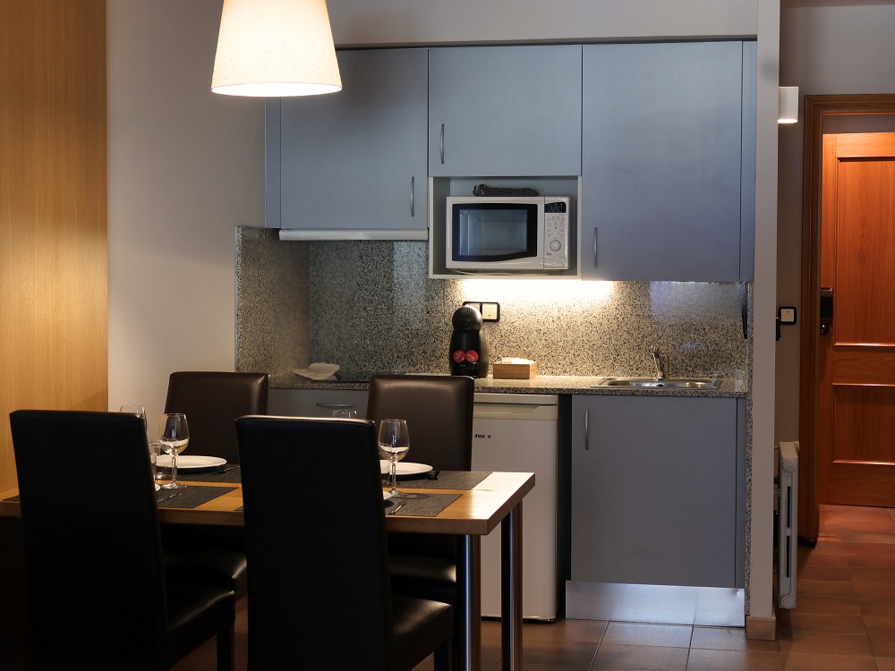 Nuestros apartamentos y estudios están completamente amueblados y disponen de una cocina americana equipada para que se sientan como en casa, disfrutando además de nuestro servicio de limpieza diaria y de conexión wifi gratuita.